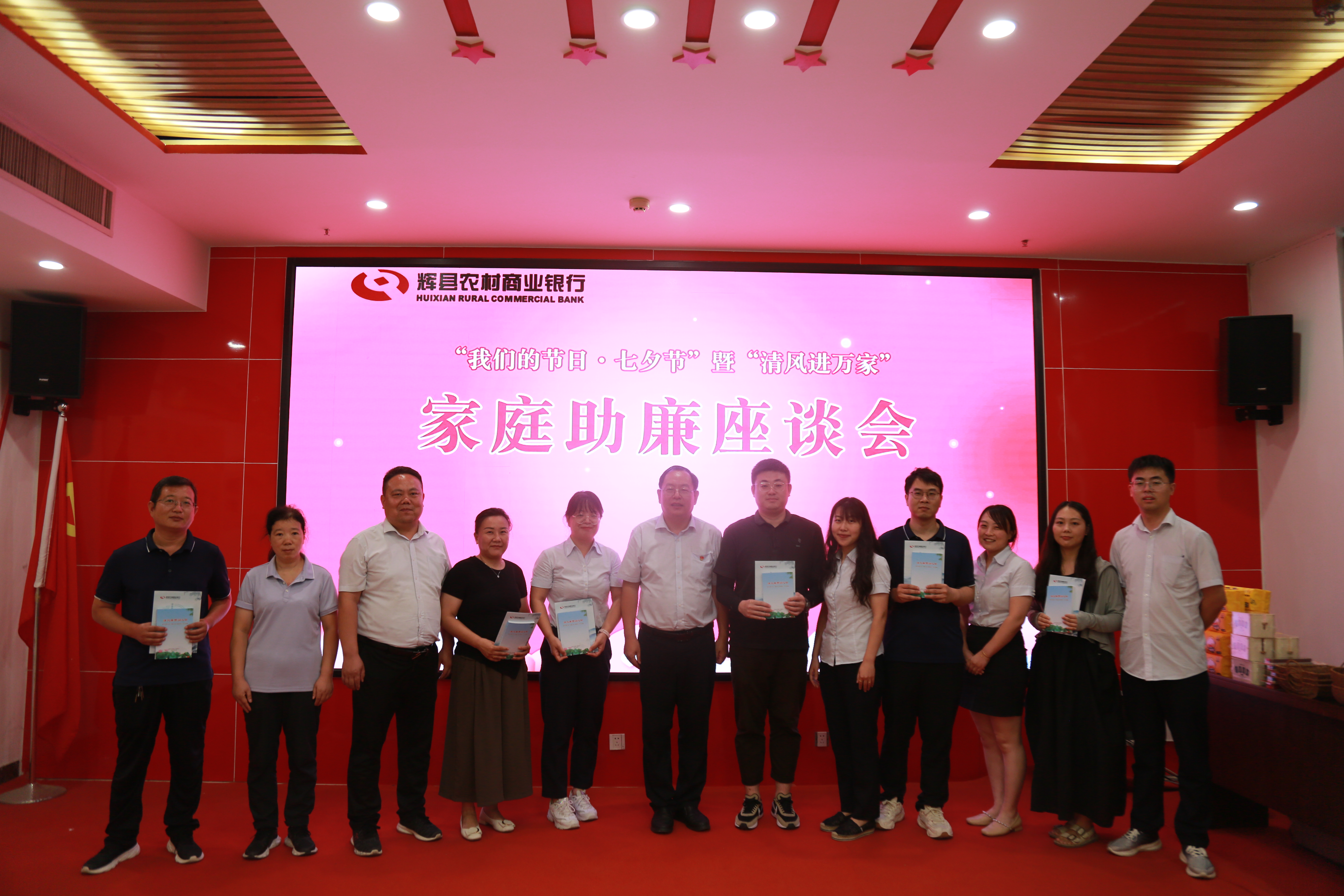 农金在线河南讯 未来可七,聚会今夕。2023年8月22日是中国传统节日中最具浪漫色彩的一个节日——七夕节,为充分发挥传统节日在加强公民思想道德建设中的载体作用,进一步弘扬中华民族优秀传统文化,倡导正确的爱情观、婚姻观、家庭观,辉县农商银行举办“我们的节日·七夕节”暨“清风进万家”家庭助廉座谈会活动,党委委员、纪委书记、监事长王建发及30余名员工参加。