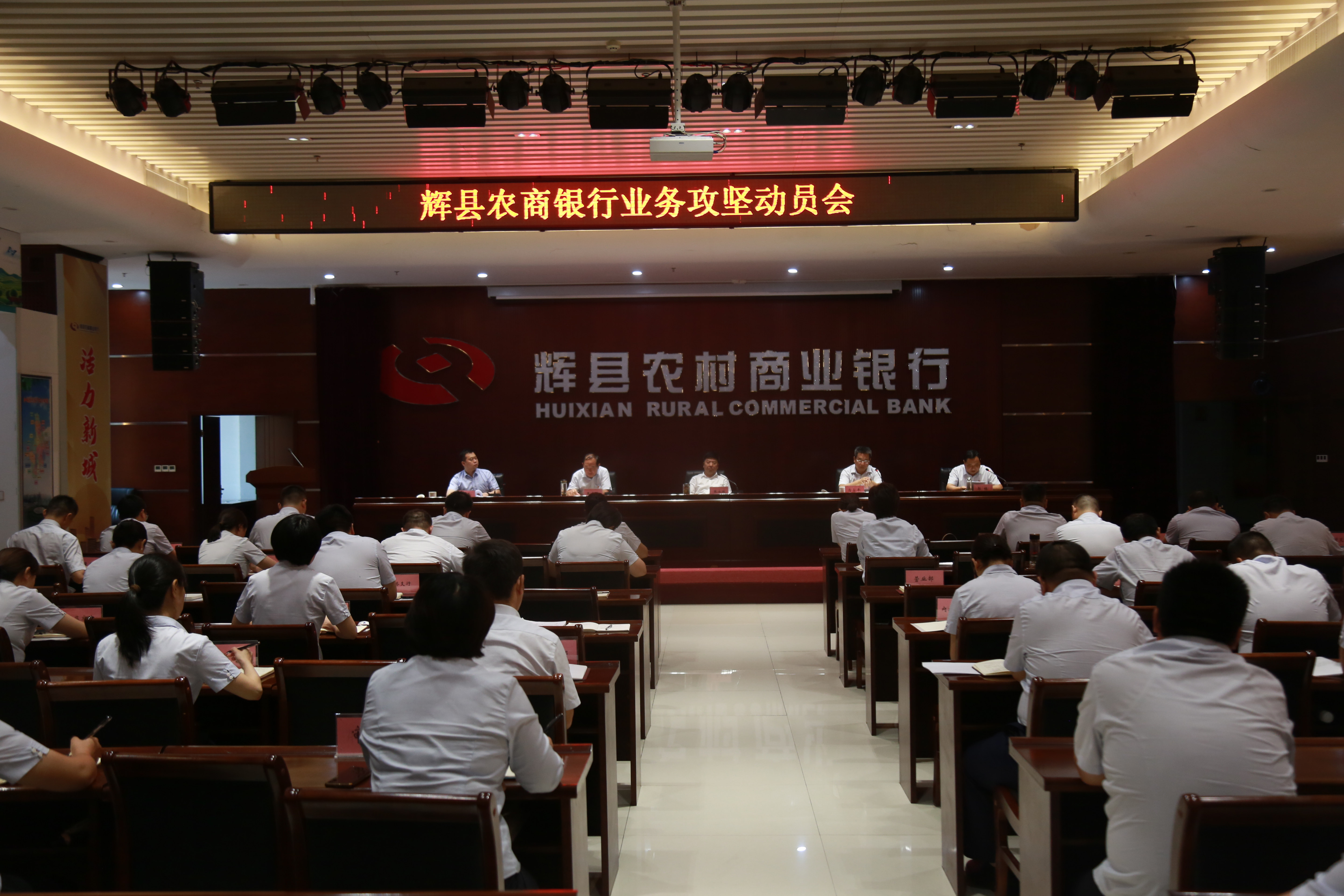农金在线河南讯 2023年8月17日,辉县农商银行召开“业务攻坚”动员会,传达和贯彻落实省联社、市行会议精神,安排化险、合规和降本等重点工作,对“业务攻坚”活动进行动员部署,行领导班子成员、中层正副职、支行行长助理等参加会议。
