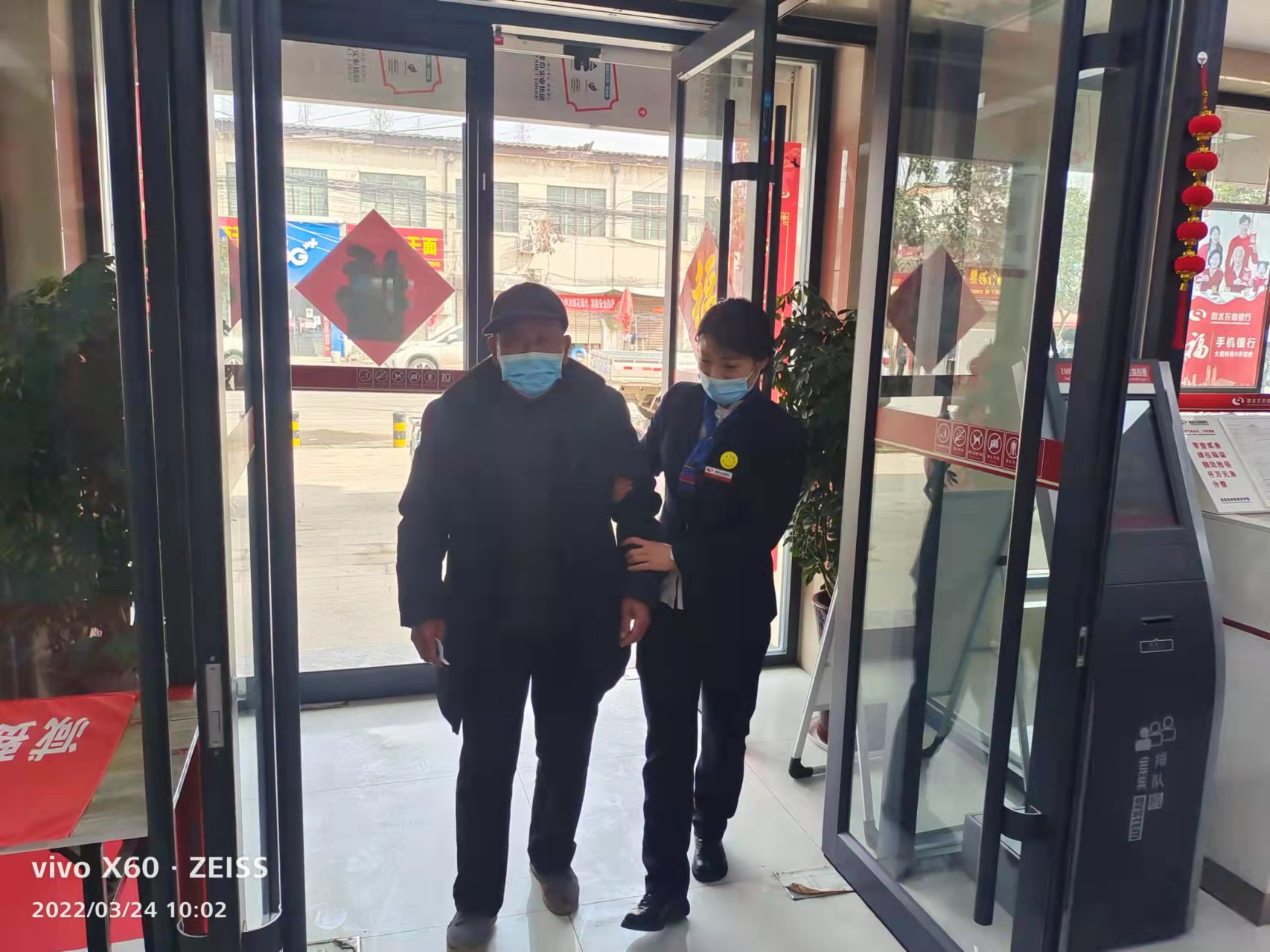 农金在线河南讯 3月24日,一位年逾八旬的老人来到商水农商银行舒庄支行,大堂经理看到后,赶紧上前搀扶着老人,说道:“您好!大爷,请问您想办理什么业务?”老人用颤抖的手指着窗口说:“我要存款”。大堂经理明白情况后,将大爷送至柜台旁,并特心的为他戴上老花镜,同时亲切的和老大爷拉起家常,得知大爷家就住在这附近,经常散步经过我们银行门口,索性就在我们银行开了户,大爷说:我以前当过侦察兵,看人看事最准了,一看你们银行这些人就善良,没有那么多“花道道”,我就喜欢你们这家银行,说话好听,服务周到,办事靠谱。”“大爷,那您以后要常来啊!”大堂经理笑着说。柜员迅速为大爷办理完业务后,将银行卡和单据递到大爷手中,老人家双手接过卡和单据,颤抖的举起右手向我们致谢:“谢谢,我还会再来的。”那一刹那我们突然被感动了,目送着大堂经理搀扶着大爷走出大门,那句“我还会再来的”话语一直回响在耳边,我们认真做好自己的本职工作,真诚、贴心、细致的服务来我行办业务的每一个客户,为的不就是得到客户肯定吗。