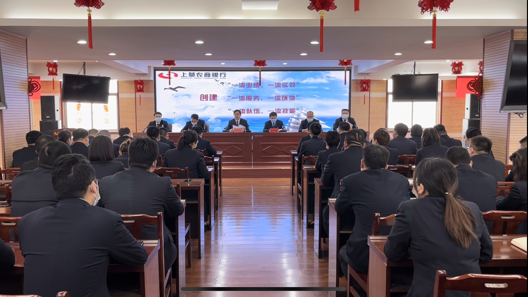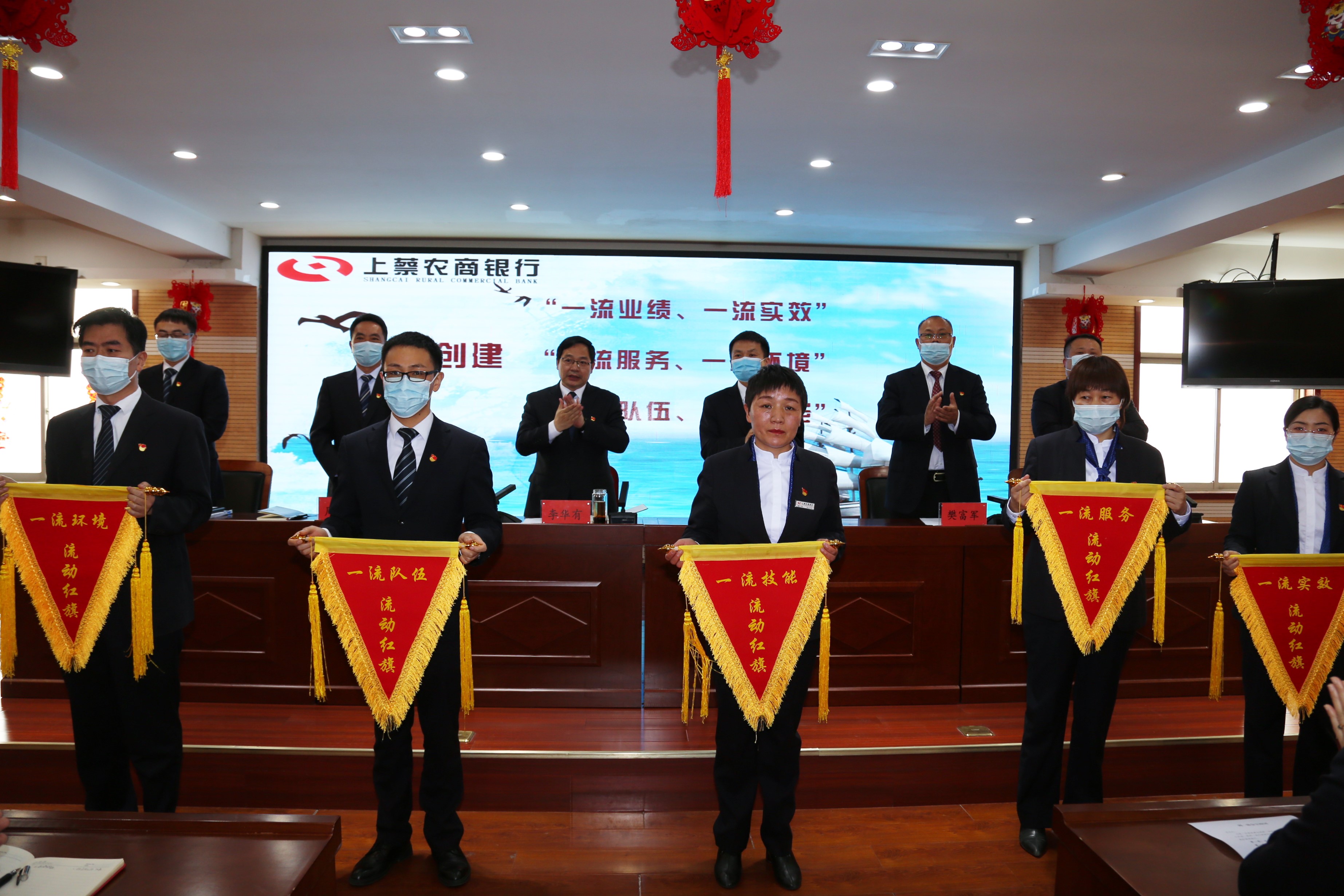正衣冠,唱国歌,提士气……....随后,总行办公室、人力资源部、党群工作部依次通报三个“双一流”周报,行领导班子为上周先进部(室)授“一流业绩和一流实效”、“一流环境和一流服务”、“一流队伍和一流技能”流动红旗。