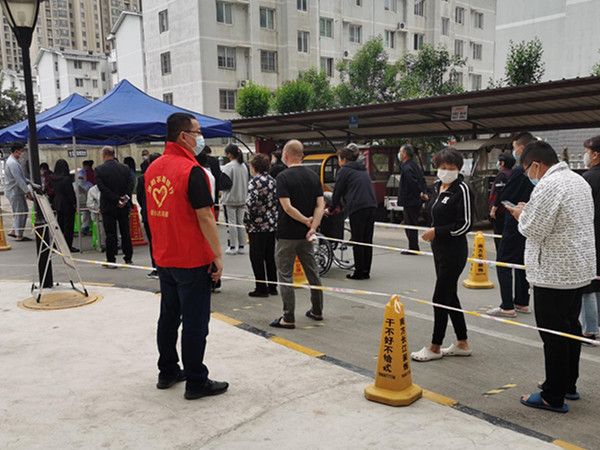 农金在线河南讯 根据市新冠肺炎疫情防控指挥部要求,5月8日,洛阳市第二轮核酸检测工作启动。洛龙支行组织志愿者就近参加社区志愿活动,共筑战疫堡垒。核酸就检测现场,志愿者帮助年纪大的居民扫“健康码”,提醒大家保持“一米”间隔,引导检测秩序等,与社区党员干部、医护工作人员一起确保核酸检测工作的有序开展。志愿者们用自己的实际行动为做好疫情防控工作尽一份心、出一份力,为助力疫情防控、守护健康洛阳贡献力量。(尚合尧)