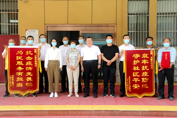 农金在线河南讯 5月23日,太康县城关镇副镇长刘玉丽及社区干部为太康农商银行送来印有“抗击疫情无畏惧,为民服务有担当”“筑牢抗议防线,守护社区平安”两面锦旗,对该行在疫情防控期间勇挑重担、捐赠物资,助力社区疫情防控,守护居民健康做出的努力和贡献表达了衷心感谢和诚挚地敬意!