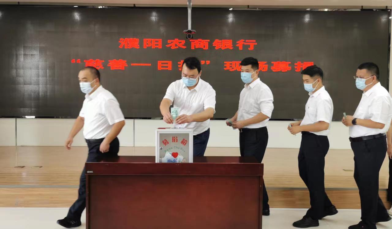 濮阳农商银行作为本土性金融机构,全力服务地方经济社会发展是义不容辞的责任和义务。本次活动前,濮阳农商银行积极发动全行员工参与,倡导奉献爱心,汇聚正能量。倡议发出后,得到全行干部员工的积极响应,行党委书记、董事长翟建强及领导班子率先垂范,带头捐款,给予广大干部员工示范激励。全行干部员工踊跃参与,纷纷慷慨解囊,当天募集善款共计21950元,将全部交由市慈善总会管理使用,主要用于助学、助医、助老、助残及赈灾、乡村振兴等慈善项目。