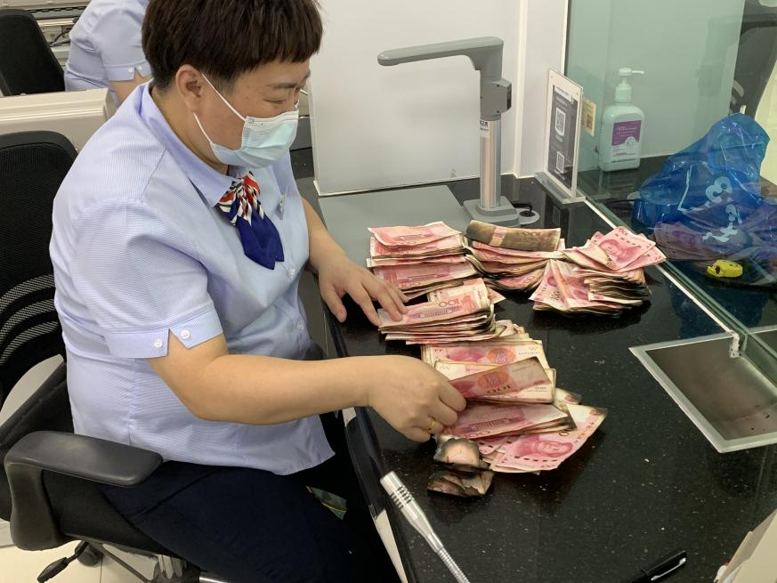 大堂经理带阿姨到柜台上说明情况,网点负责人立即协调安排2名柜员开始清点被大火烧损的纸币。经过近一个小时的协作,共兑换53600元的现金,并补办了存单和存折。同时,大堂经理还详细向阿姨讲解了残缺污损人民币的兑换标准和消防安全知识,提醒其勤检查家中水电安全,外出切记关水关电,家中不要存放大量现金,以防水火、盗窃等造成损失。看着手里崭新的现金和存款凭证,阿姨开心的笑了。