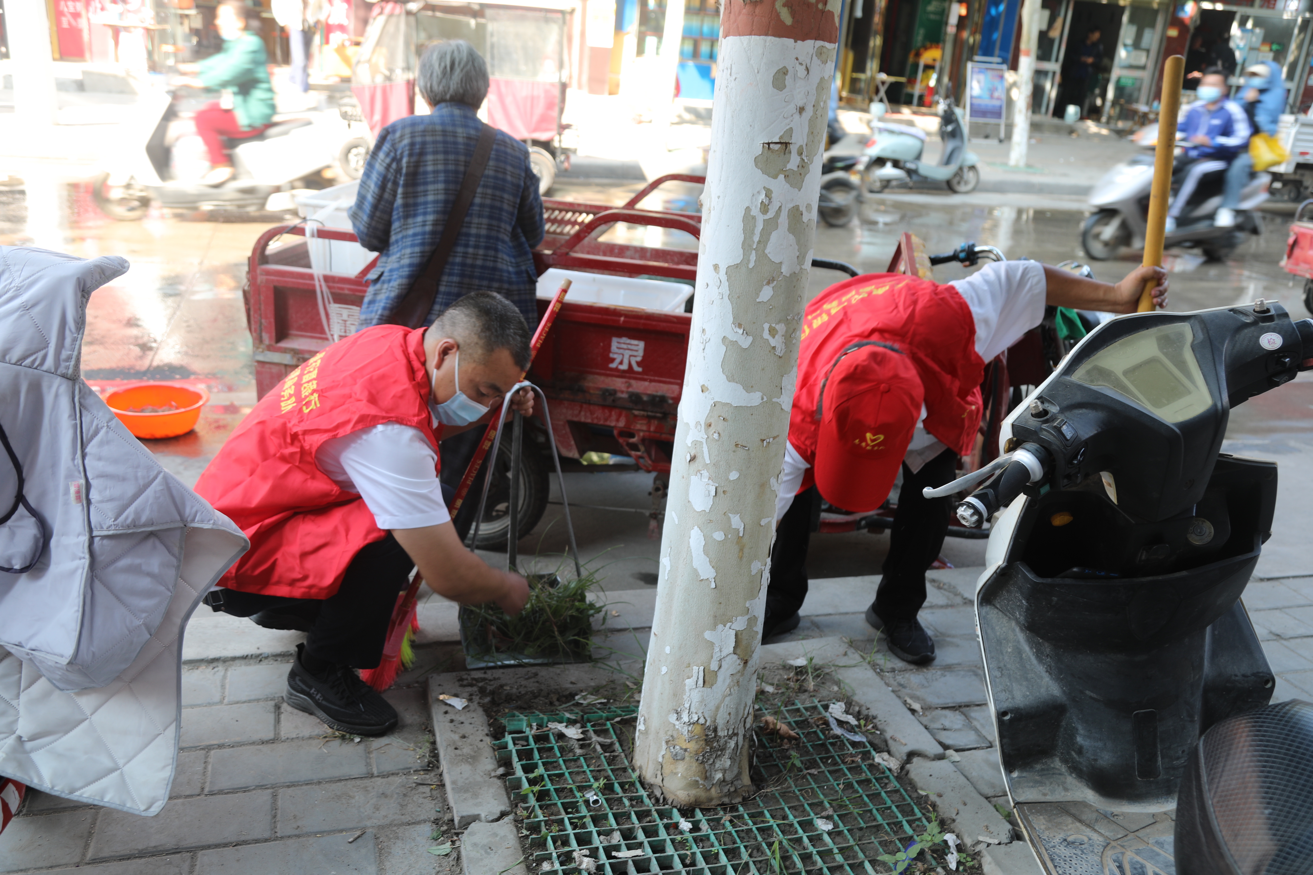在志愿服务活动中,执勤志愿者们统一穿着红马甲、戴上小红帽,充分发扬不怕脏、不怕累的精神,各司其职,清理道路及路肩上的各类杂物,确保道路路面干净;清除墙面上的小广告,确保沿路墙面整洁;加强出店经营、占道经营、乱停乱放、乱扔乱倒、闯红灯、乱穿马路等不文明行为的管理,做到机动车、非机动车整齐有序停放,过路行人文明出行,有效治理了分包路段的“脏、乱、差、弱、堵、污”等问题,受到周边商户和居民的充分肯定和一致好评。此外,该行志愿者们还向居民、行人宣传创文知识,提升市民对文明城市创建的知晓率、参与率、支持率。