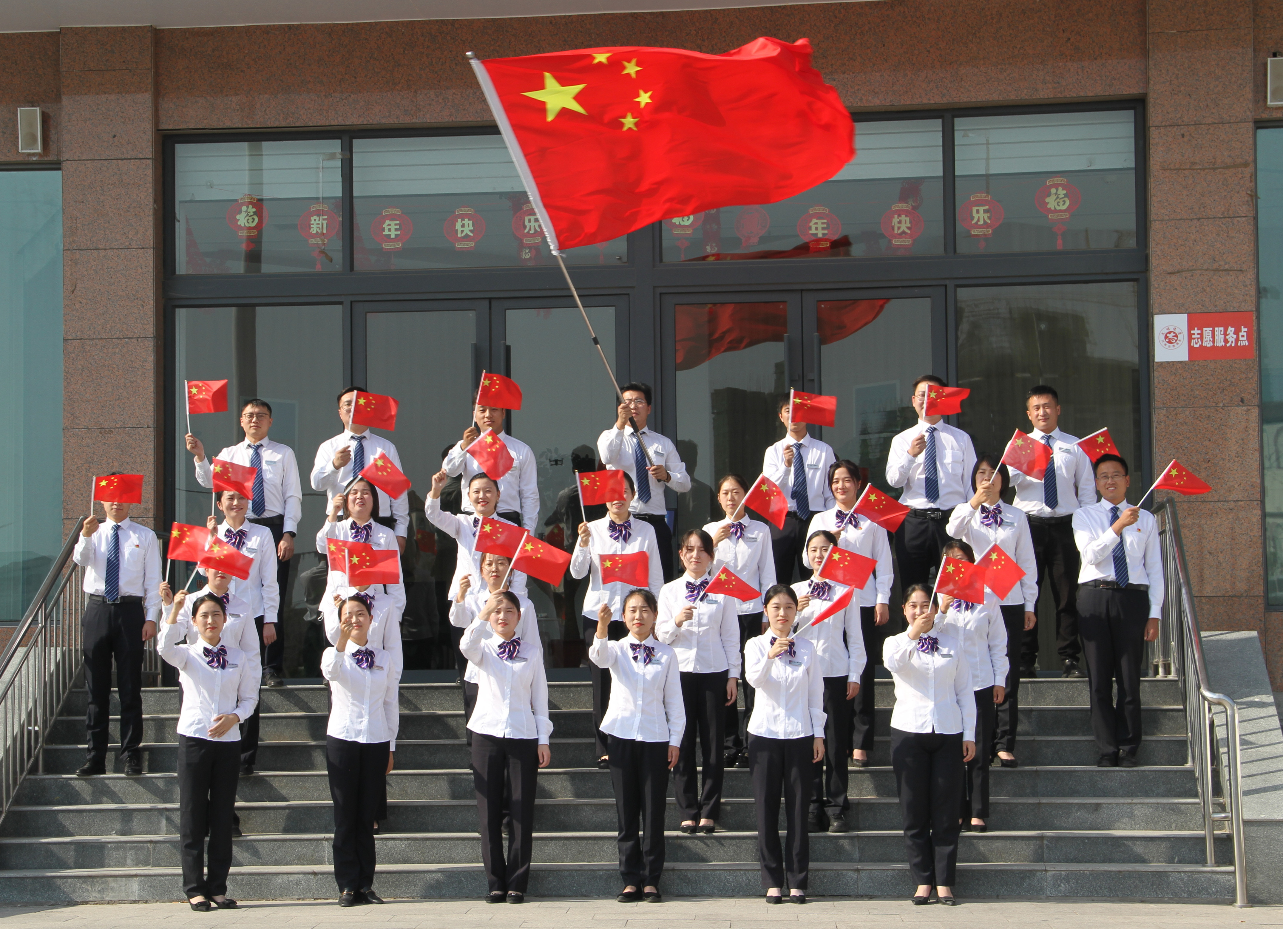 “我和我的祖国,一刻也不能分割。无论我走到哪里,都流出一首赞歌......”主题活动在《我和我的祖国》的悠扬旋律中拉开帷幕。来自辖内25家支行的40余名干部职工用与五星红旗合影、拍照的方式,展示农商人朝气蓬勃、积极向上的精神面貌,表达对伟大祖国的无限热爱和美好祝福。