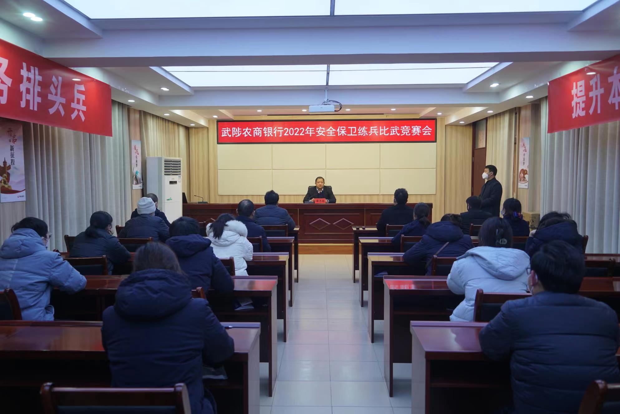 农金在线河南讯 为进一步强化全行员工安全责任意识,提升安全防范技能水平,营造安全有序的经营环境,12月24日下午,武陟农商银行举行了2022年安全保卫练兵比武竞赛活动,武陟农商银行党委委员、副行长薛志龙出席并指导活动,安全保卫部全体员工、各支行主管会计和安全员参加活动。