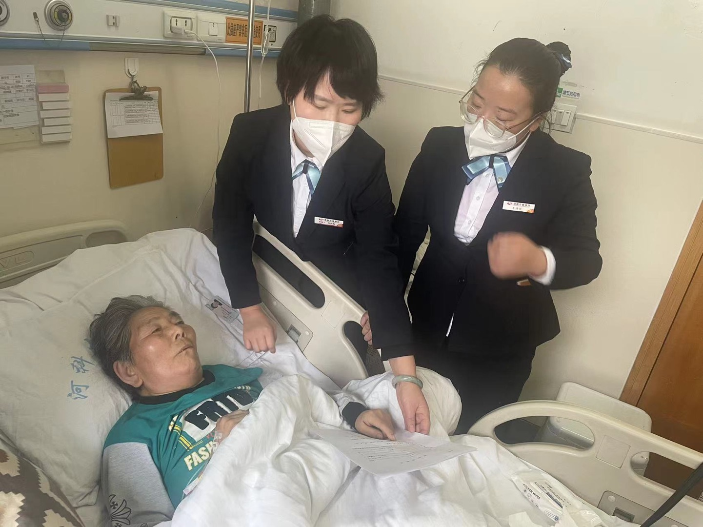 这句话吸引了在场客户的目光。听大爷讲述前几日老伴生病住院,意识不清醒,急需支取存单用于支付手术费,但老伴病情严重,暂时无法想起存放地,家里人十分着急,前来银行咨询。在了解事情原委后,武汉路支行工作人员立即行动,认真登记医院地址和客户联系方式,利用中午休息时间安排两名员工为老人提供上门服务。