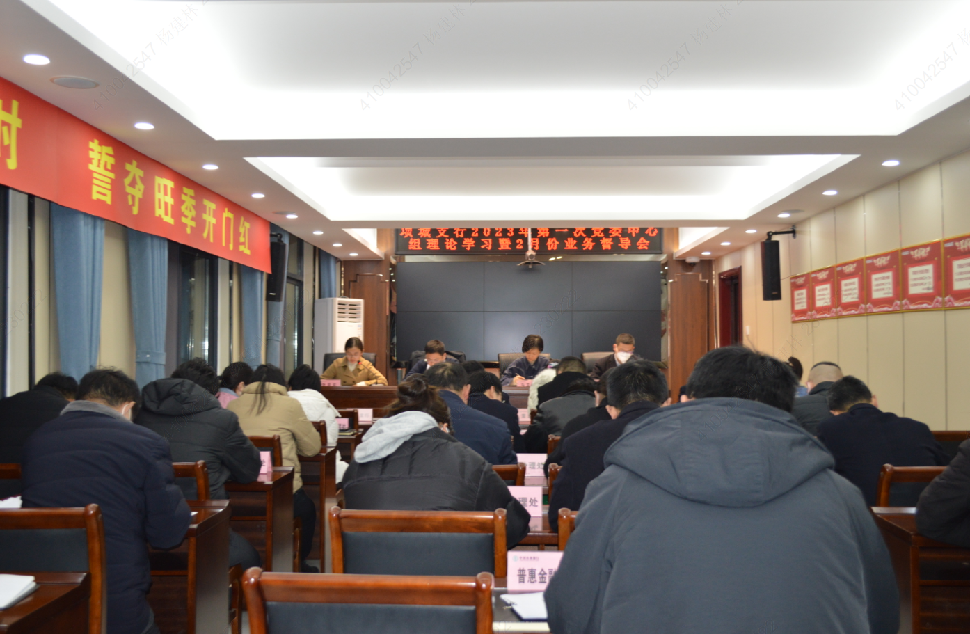 农金在线河南讯 2月21日晚上,农行河南项城支行召开“春天行动”2月份业务督导会。对标对表,对“开门红”工作进行再加压、再鼓劲和再督导,动员全行抓住后40天时间凝心聚力,众志成城,全力决战“开门红”。会议由党委书记、行长马辉同志主持,支行班子成员、机关前台部室负责人和各网点主任以及业务骨干参加了会议。
