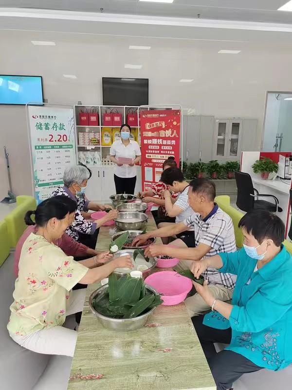 农金在线河南讯 6月21日上午,石化支行在营业大厅开展"粽香情浓暖人心"包粽子大赛迎端午活动,与周边居民同包粽子,营造浓郁的节日气氛。
