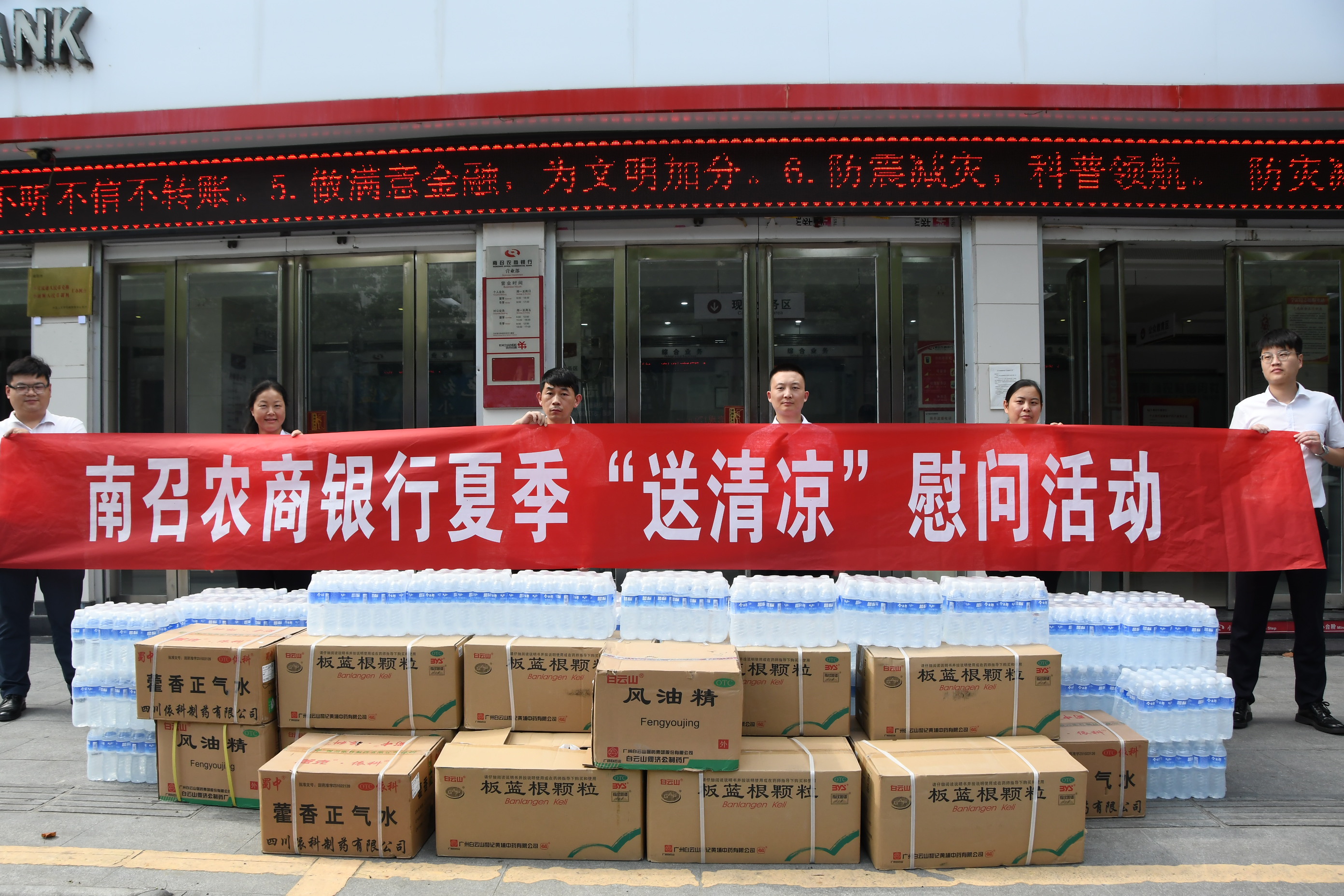 农金在线河南讯 7月份下旬以来,持续的高温天气考验着奋战在各工作岗位上的员工们,同时也牵动着南召农商银行党委班子的心。为做好高温酷暑期间的防暑降温工作,促进全行安全经营,7月25日,南召农商银行开展了送清凉慰问活动。