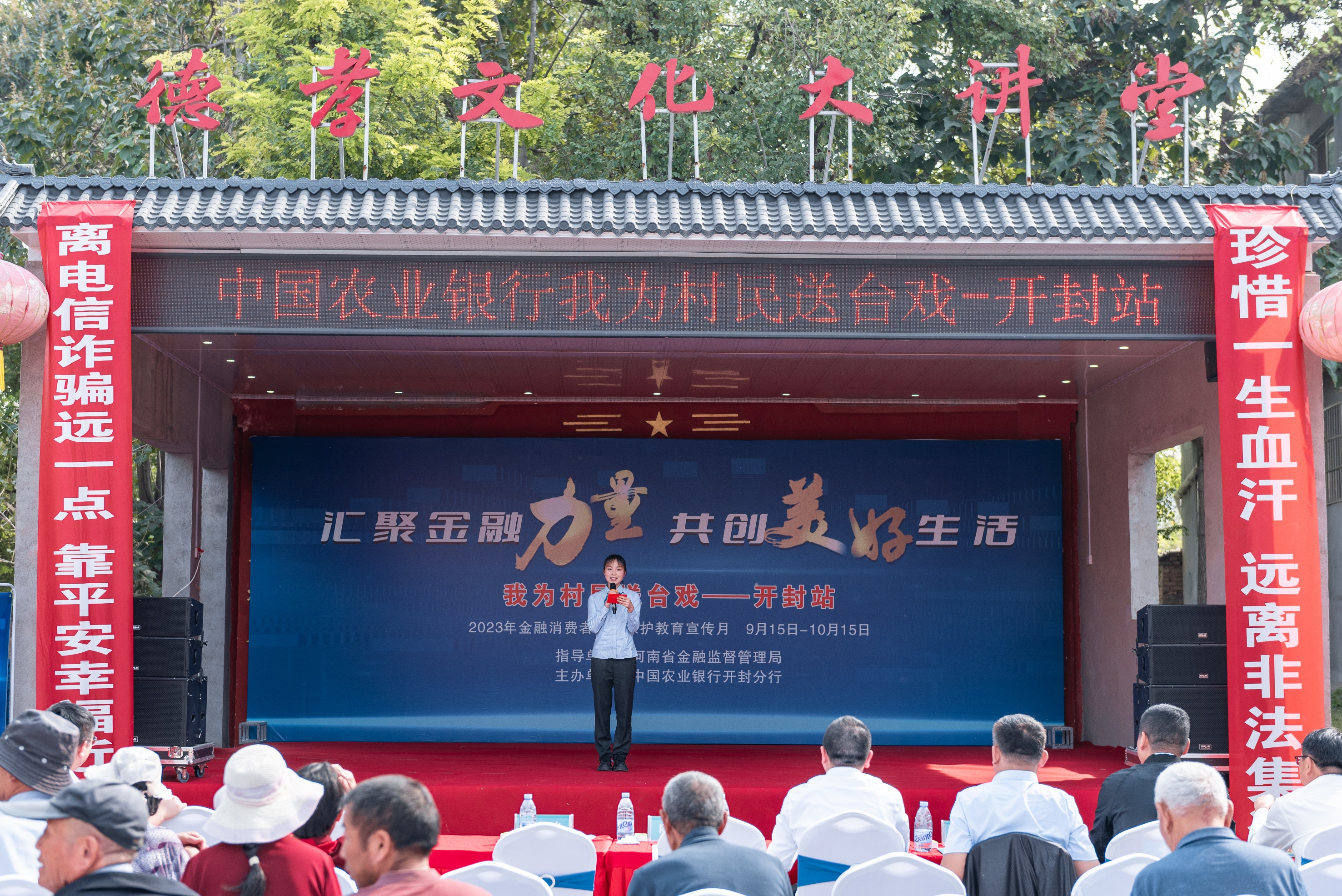 农金在线河南讯 10月11日,农行开封分行开展2023年“金融消费者权益保护教育宣传月”活动,来到了开封市兰考县闫楼乡郭庄村开展首站“我为村民送台戏”活动。此次活动以“汇聚金融力量 共创美好生活”为主题,秉持着以人民为中心的理念,从贴近人民群众需求的金融基础知识入手,将金融消费者权益保护知识送到田间地头、村民心头,向广大农村金融消费者普及消保知识,树立理性消费、合法维权的理念,让消保知识走进千家万户,让乡村老百姓心中有数、心中有底。