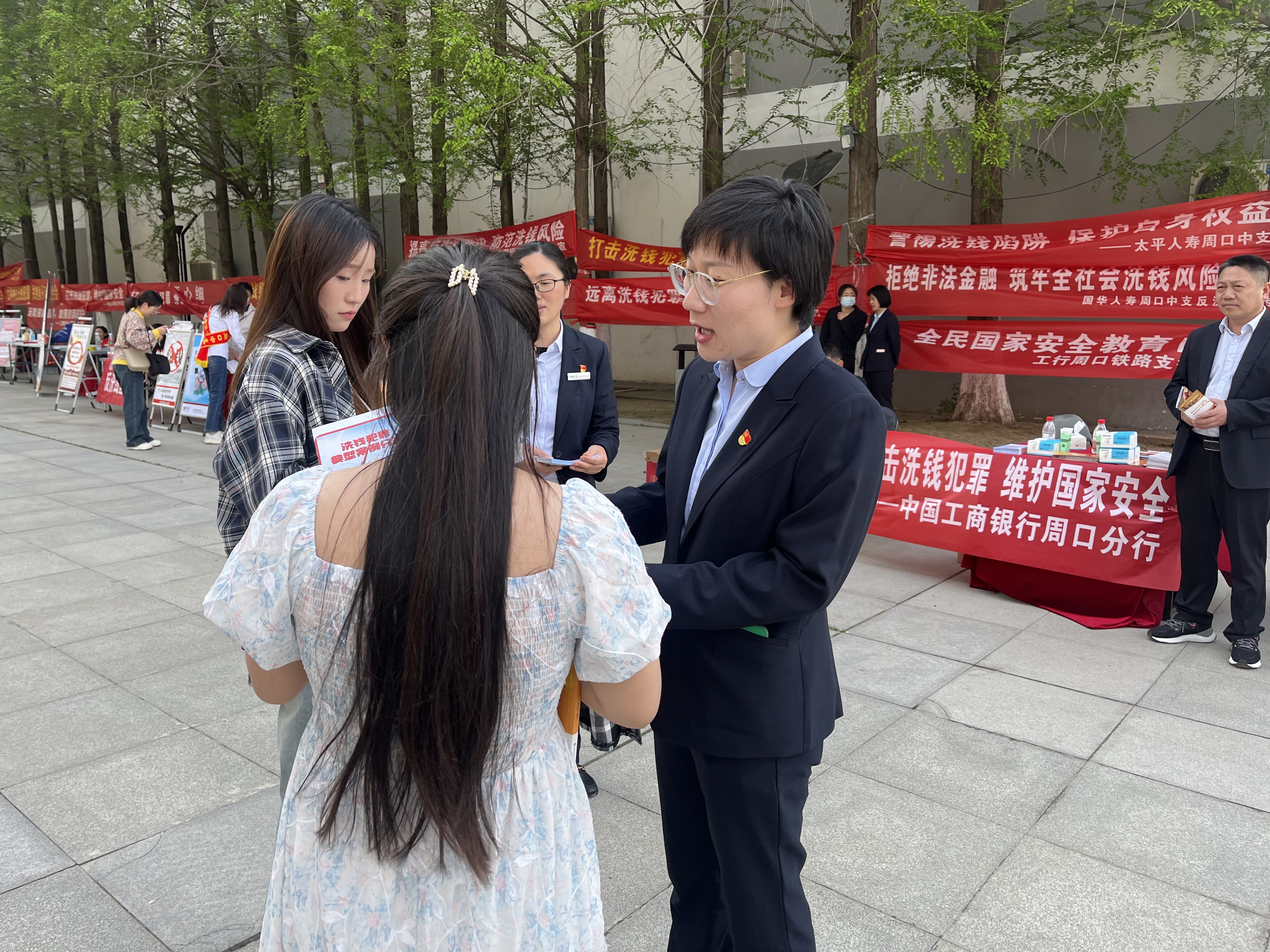 活动现场,工行周口分行通过设立宣传台,摆放宣传展架,向在校师生发放反洗钱宣传手册,以通俗易懂的语言讲解反洗钱金融知识,揭示洗钱手段及危害,宣传全民参与预防和协助公安机关打击洗钱、贪污等犯罪活动的重要意义。学生们在现场学习中掌握了如何保护自身信息,做到不泄露、不出租出售本人银行卡和账户等知识,纷纷表示要勇担社会责任,积极参与到反洗钱、反欺诈活动中,自觉维护人民群众的合法权益和金融秩序。
