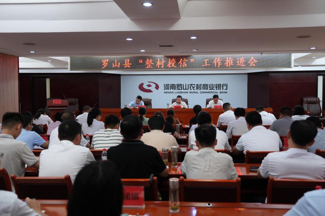 农金在线河南讯 6月28日下午,罗山县“整村授信”工作推进会在罗山农商银行机关九楼会议室召开。县金融服务中心主任邱晓艳,各街道办事处、乡镇负责人,罗山农商银行党委副书记、行长付生,党委委员、副行长张杰林,农商行各营业网点负责人出席会议。
