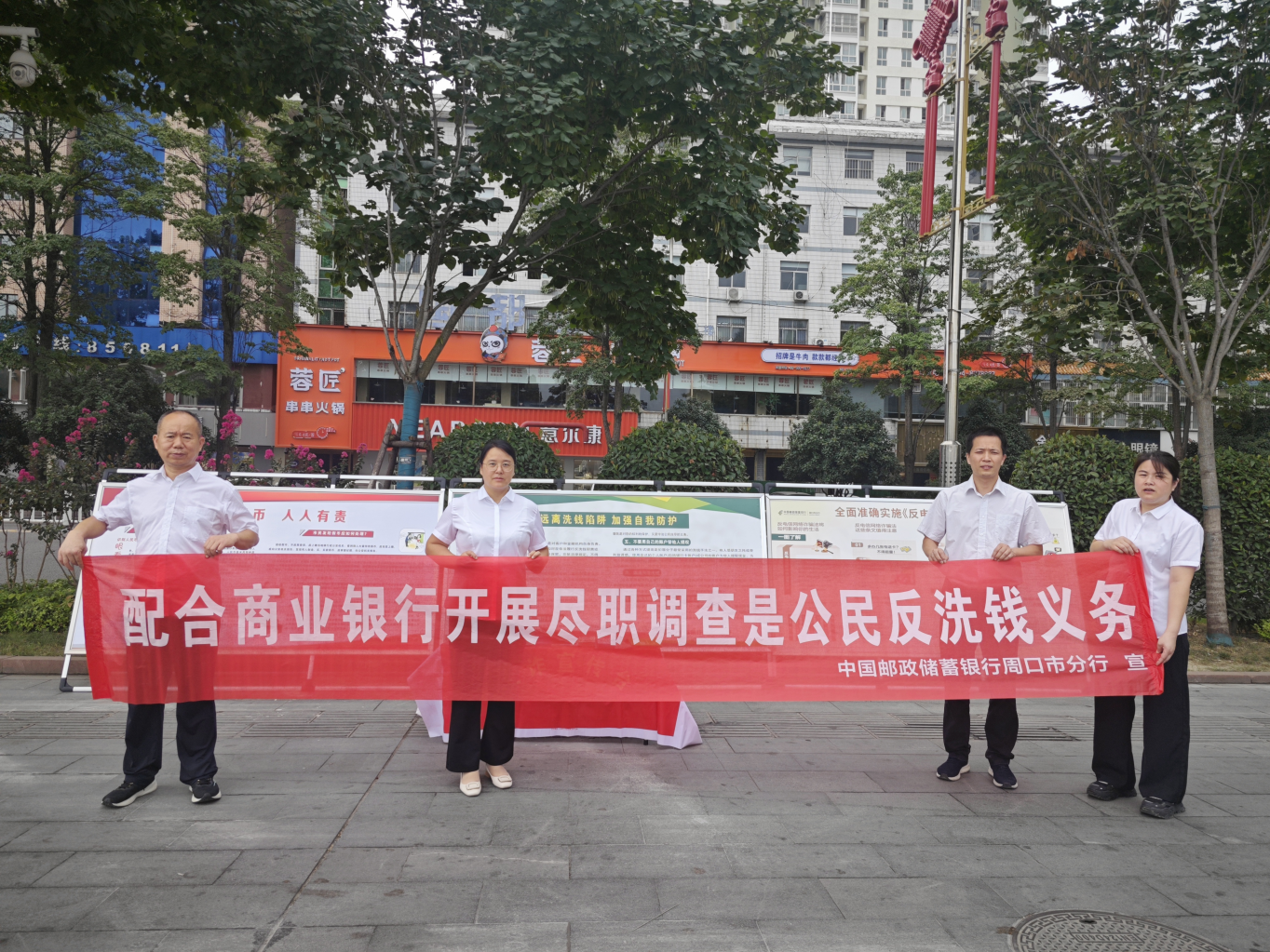 农金在线河南讯 为进一步提高社会公众反洗钱意识,提升员工洗钱风险防范能力,保护客户资金安全,更好地践行反洗钱法定义务和社会责任,邮储银行周口市分行在全辖范围内组织开展了2024年反洗钱专项宣传活动。