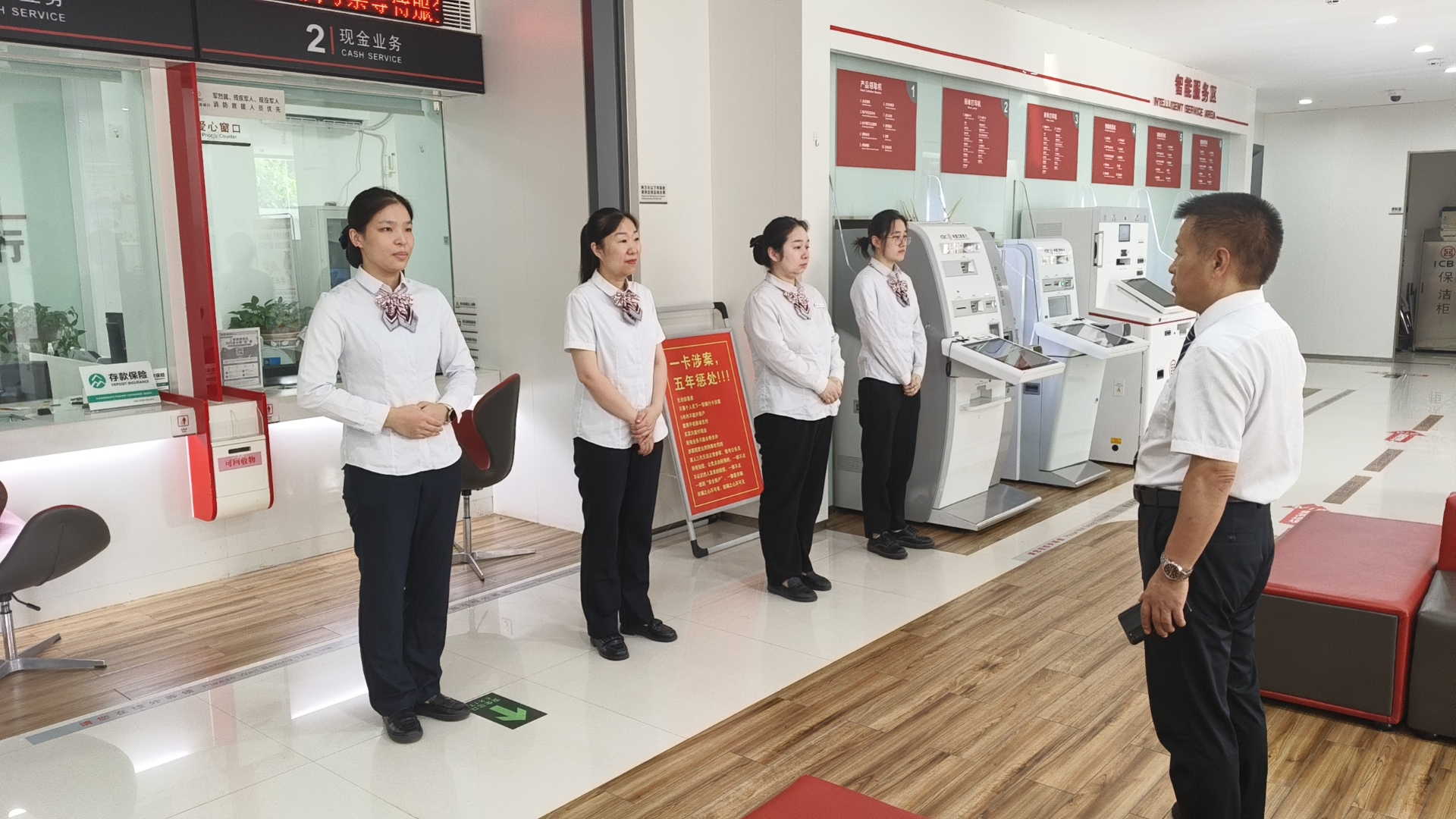 工行周口分行对所辖网点物理环境实施靓化管理,统一网点布局,对网点品牌形象、服务设施、厅堂绿化美化、现场管理等环节开展现场指导与帮扶,全面塑造科学布局,设施完善,整洁靓丽的营业厅。抓实一线网点“软实力”提升,完善标准化服务流程,组建优质服务柔性团队,加大对一线人员综合技能培训,组织对网点人员精神面貌,仪表举止,团队建设和业务能力等常态化互查,利用晨会、班会总结经验、补短板,以点带面,提升营业网点服务质效。