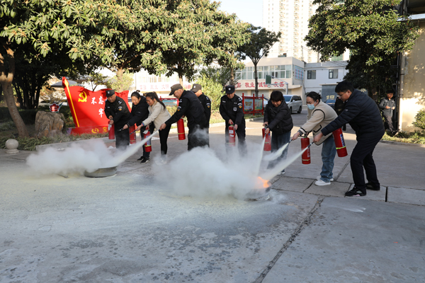 农金在线河南讯 11月27日,宝丰农商银行组织机关各部室、微型消防站、鹰翔押运大队、鹰威监控中心、城区网点安保人员、职工餐厅工作人员在总行办公大楼,开展了一场紧张而有序的高层消防逃生演练。总行分管行政保卫工作副行长何抗洪、县消防大队任晋哲教官参加并指导演练活动。