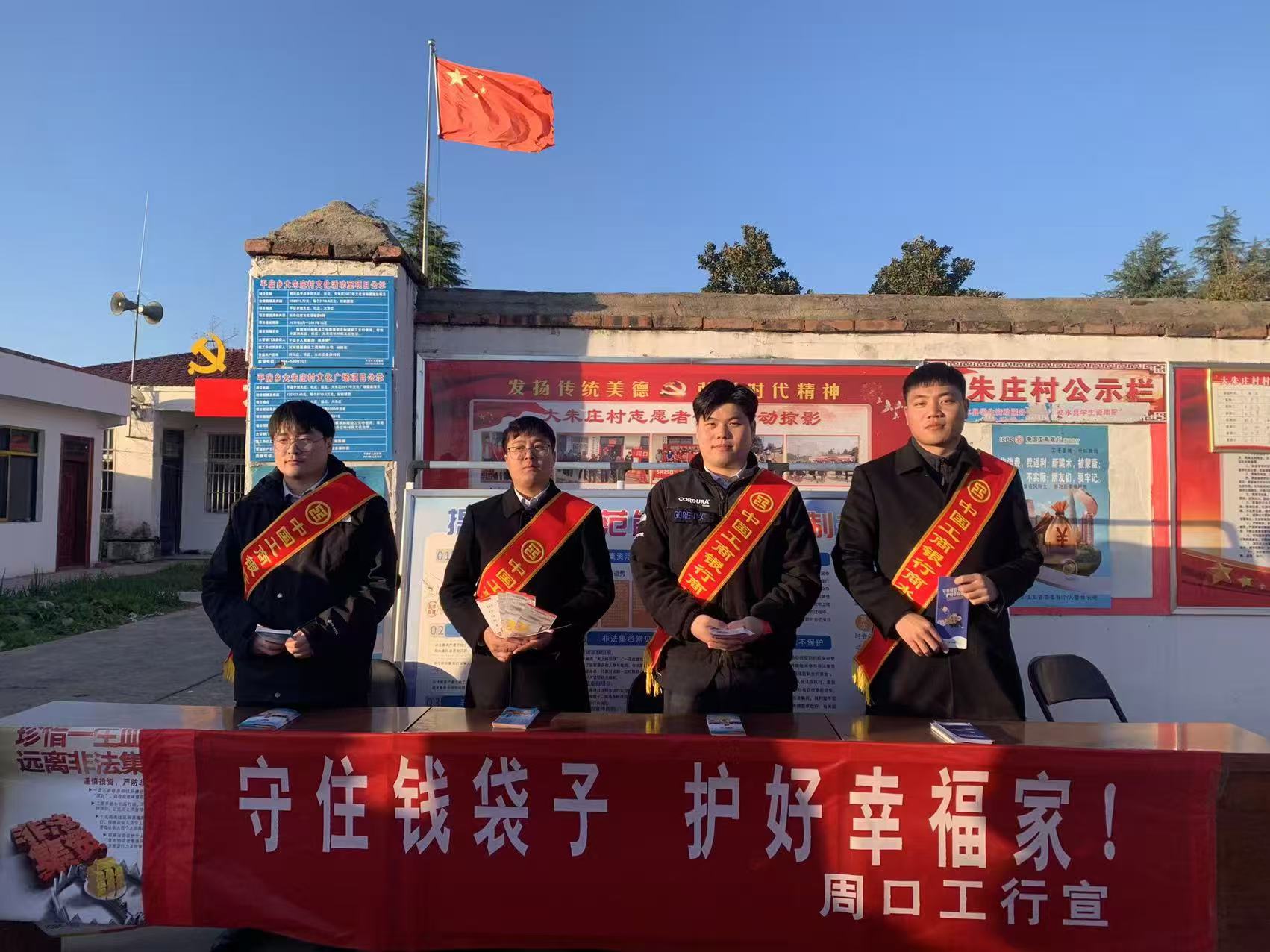 此次活动以工行周口商水支行帮扶村大朱庄为宣传阵地,活动现场该行志愿者通过布放宣传展板、张贴宣传海报、悬挂防非宣传条幅、发放宣传折页等形式向乡村群众普及防范非法集资金融常识。同时,结合非法集资典型案例向群众讲解揭示非法集资的常见手段、主要特征、表现形式,帮助群众有效识别并远离非法集资,科学理财,规范办理金融业务。