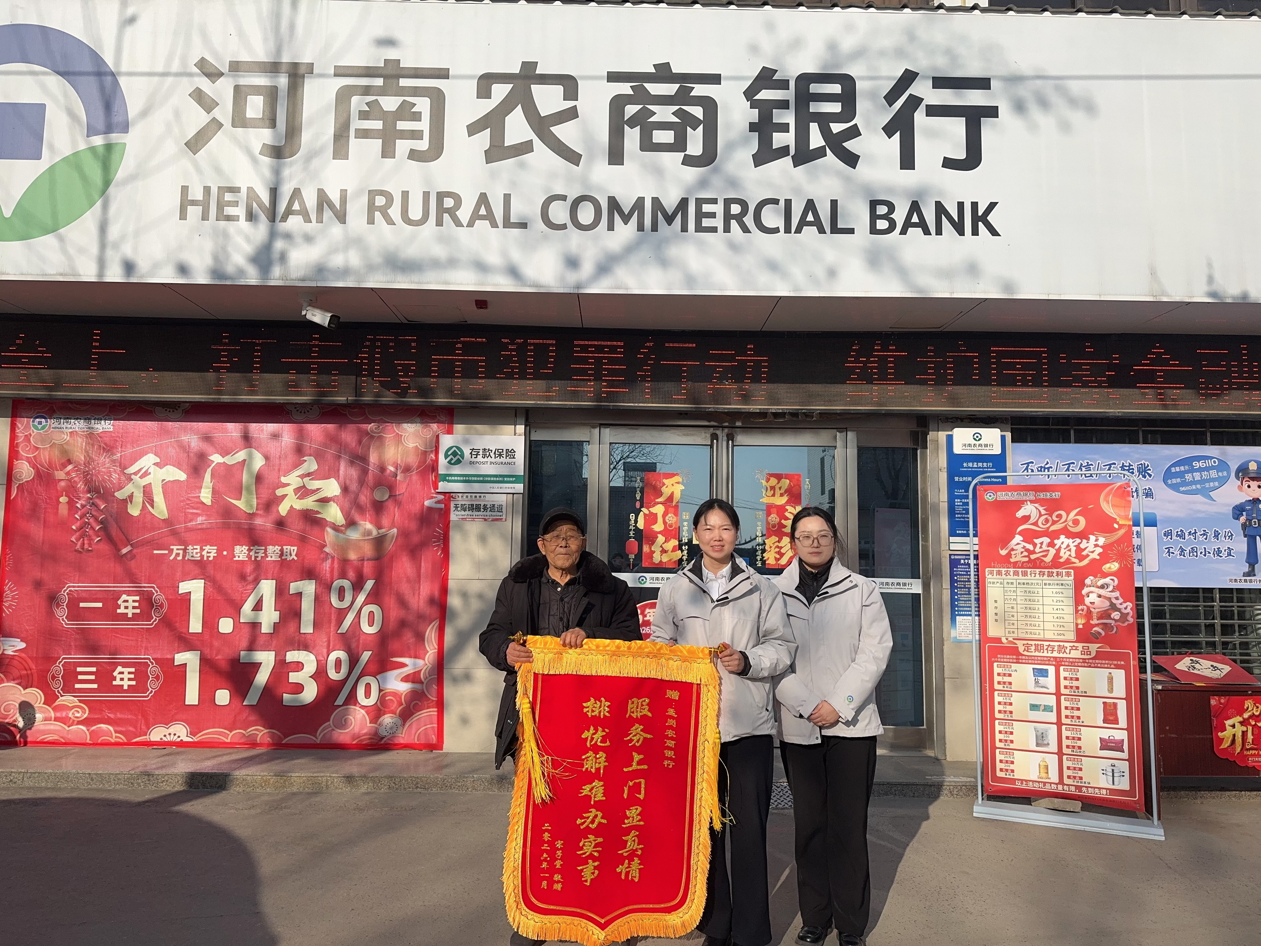次日,该网点内勤主管与柜员如约上门,高效为大娘完成社保卡挂失补办业务,并第一时间向网点负责人反馈老人的身体状况与家庭困境。当天下午,负责人便带领员工携带油、米等生活物资登门看望,叮嘱大爷“孩子不在身边,有困难随时找农商银行”,同时嘱托驻村客户经理后续要多上门走访,为老人提供力所能及的帮助。 几天后,大爷专程来到网点营业厅,紧握工作人员的手激动不已:“年纪大了出门办事难,你们农商行这么惦记我们老年人,真是太感谢了!”随后,将一面印着“上门服务显真情 排忧解难办实事”锦旗郑重相赠。这面锦旗,映照着农商行与父老乡亲心贴心的服务温度,更凝聚起全行上下在“开门红”期间提质增效、创优服务的满满干劲。 这只是一次寻常的上门服务,却被老人深深铭记。这份沉甸甸的认可,是对农商人平凡坚守的最高褒奖。河南农商银行长垣支行将始终秉持“扎根乡土、情系乡亲”的初心,把群众冷暖放在心头,把暖心服务落到实处,在服务乡村振兴、践行社会责任的征程上,持续传递金融温度与担当。