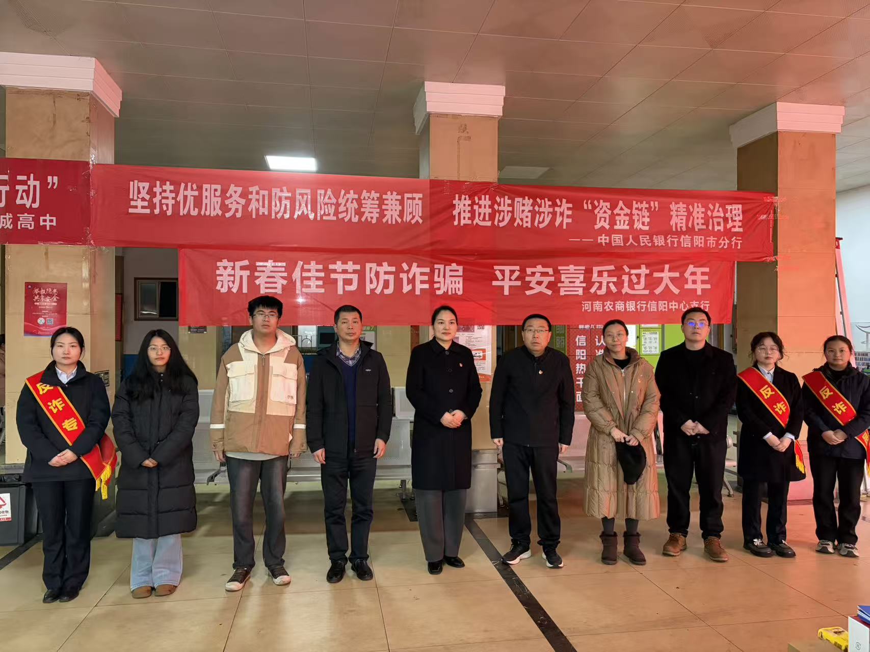 农金在线河南讯 春运期间,人流车流密集,也是电信网络诈骗易发高发的关键节点。为切实守护好人民群众的“钱袋子”,践行“金融为民”的初心使命,2026年2月27日上午,河南农商银行信阳浉河支行科技运营部联合中国人民银行信阳市分行及河南农商银行信阳中心支行,组织联合宣传队走进信阳弘运汽车站,开展了一场别开生面的反诈宣传活动,将金融安全知识送到群众身边,为春运返程旅途保驾护航。