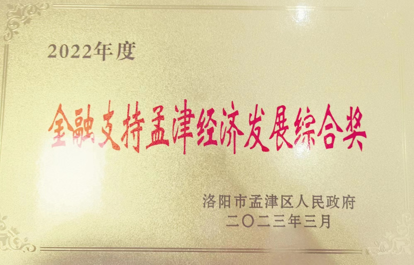 农金在线河南讯 为树立典型、表扬先进,推动洛阳市孟津区经济发展再上新台阶,4月25日,孟津区政府召开会议对2022年度金融工作先进单位予以表彰,农发行洛阳市孟津区支行荣获“金融支持孟津经济发展综合奖”。